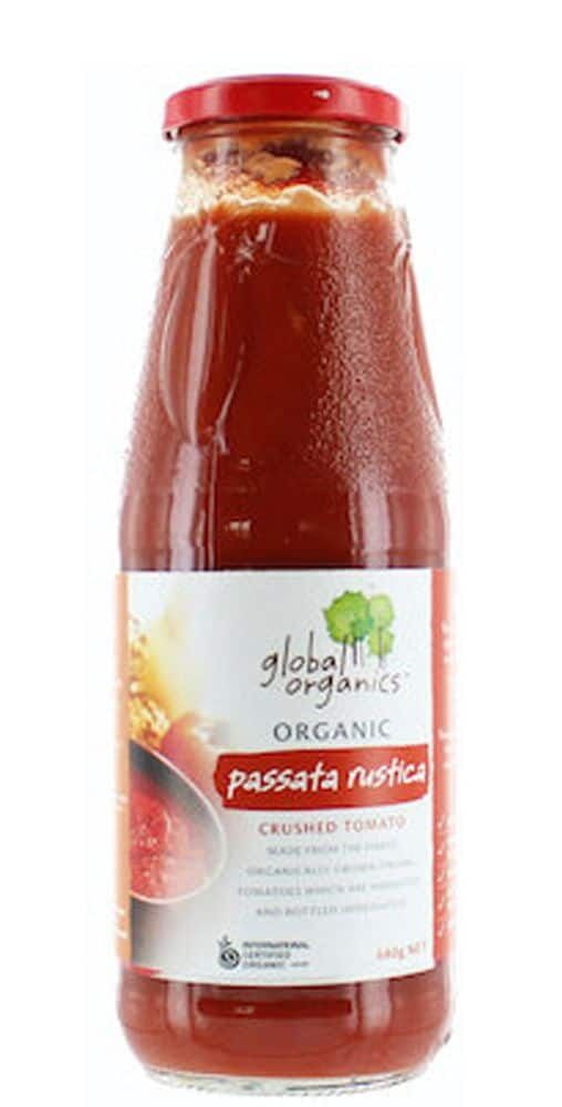 Global Organics Tomato Passata Rustica is made from the finest organically-grown Italian tomatoes which are harvested and bottled immediately. It's certified organic, vegan and a good source of fibre. Tomatoes are naturally cholesterol-free and rich in lycopene. It is gluten-free and contains no added sugar and salt.