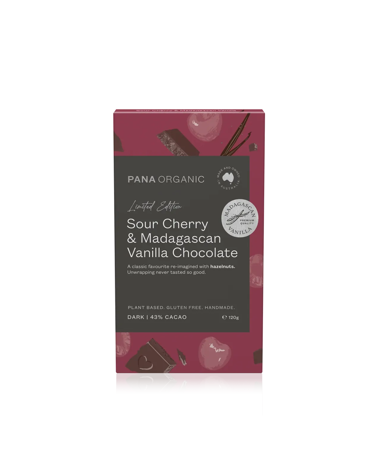 Refined with the warmth of Madagascan vanilla, this chocolate offers a silkier, more indulgent mouthfeel. The bright tang of sour cherry cuts through beautifully, delivering a flavour that’s as moreish as it is memorable — all wrapped in the richness of single origin cacao from Peru.