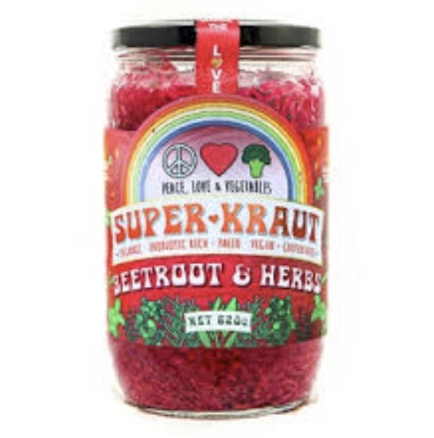 Ingredients: Cabbage*, Filtered Water, Carrot*, Beetroot*, Australian Sun-dried sea salt*, Garlic Powder*, Basil*, Rosemary*, Thyme*, PLV Super Strain Culture Starter (Lactobacillus Acidophilus DDS-1, Lactobacillus  Gasseri BNR17, Lactobacillus Reuteri LRC, Lactobacillus Plantarum, Lactobacillus Rhamnosus, Lactobacillus Salivarius, Lactobacillus Paracasei, Bifidobacterium Bifidum, Bifidobacterium Longum, Bifidobacterium Lactis) (*Denotes ORGANIC)